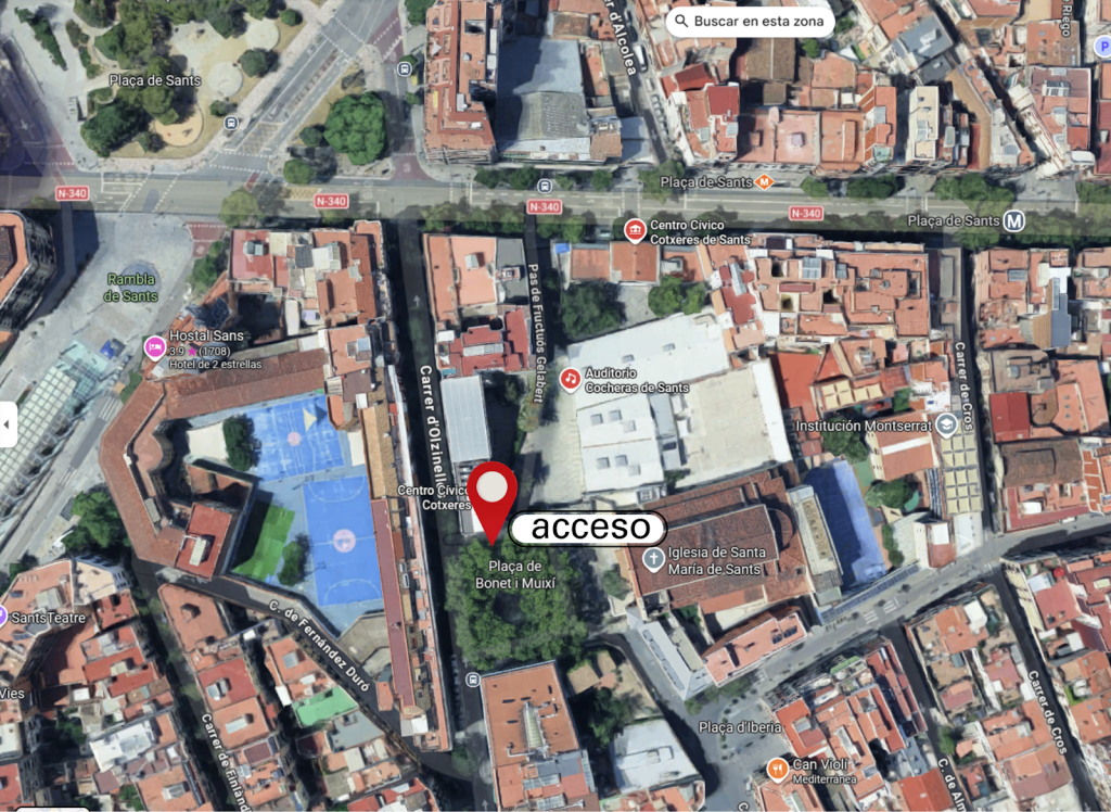 Adjuntamos imagen de referencia de Google Maps. No confundir con Centre Cívic Cotxeres de Sants, situado a unos metros.
